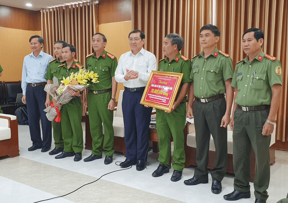 Ông Huỳnh Đức Thơ trao thưởng cho Công an TP Đà Nẵng về thành tích phá vụ án nhóm người Trung Quốc tổ chức "sản xuất" phim đồi trụy.