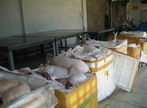 | Giữa năm 2013, liên tiếp những vụ thịt heo sữa thối, nhiễm bệnh bị cơ quan chức năng phát hiện. Chỉ chưa đầy 2 tháng 6, 7, cơ quan chức năng đã phát hiện liên tiếp 4 vụ thịt heo sữa được di chuyển trên các xe tải tuồn vào TP.HCM. Ảnh: Khám Phá. |