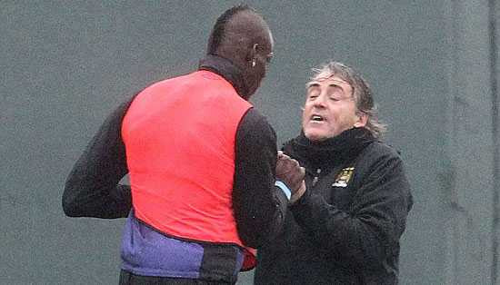 Tại một buổi tập của Man City trên sân Carrington, tiền đạo Balotelli đã có pha vào bóng khá thô bạo với đồng đội Scott Sinclaird. Điều này khiến Balotelli bị ông thầy Mancini chỉ trích dữ dội. Tuy nhiên, thay vì rút kinh nghiệm, cầu thủ ngổ ngáo này đã lao vào đòi ăn thua đủ với chiến lược gia người Italia.