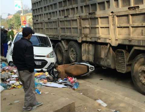 Ngoài ra, xe tải còn va chạm với 4 chiếc xe máy khác đang lưu thông trên đường. Hậu quả, một người ngồi trên xe máy bị thương, 2 ô tô con cùng một số xe máy bị hư hỏng nặng.