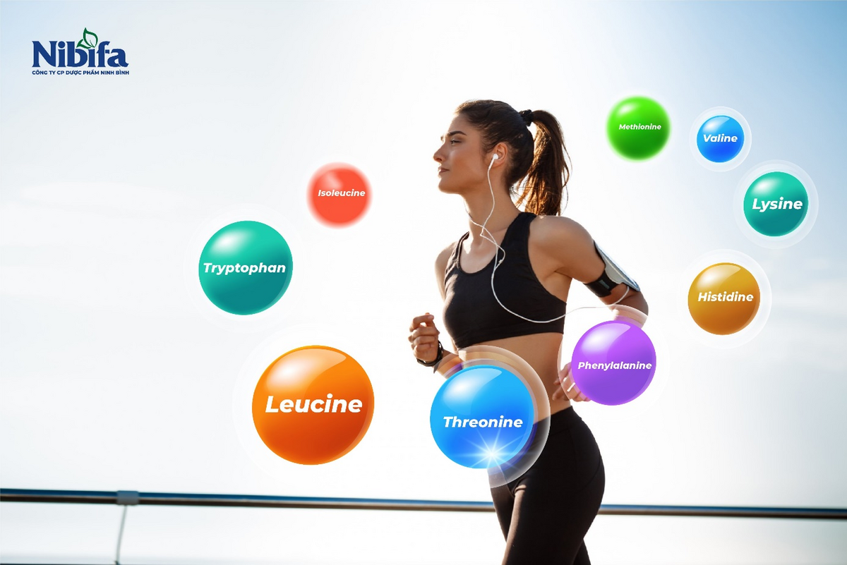 9 loại axit amin thiết yếu mà cơ thể cần có giúp tăng cường sức khoẻ thể chất, cơ bắp và cải thiện tâm trạng gồm: histidine, isoleucine, leucine, lysine, methionine, phenylalanine, threonine, tryptophan và valine. Các axit amin thiết yếu này liên kết chặt chẽ với nhau mang lại nhiều lợi ích cho người sử dụng, trong đó: