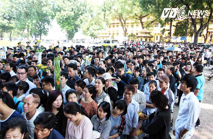 Sáng 8/10, hàng vạn đồng bào đã xếp hàng dài tới tận trước cửa Lăng Bác để chờ đợi được vào viếng Đại tướng Võ Nguyên Giáp.