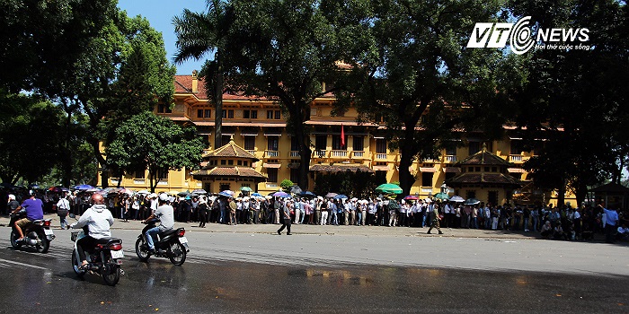 Đây là khung cảnh trước cửa Bộ Ngoại giao. Hôm nay có rất đông đồng bào từ các tỉnh xa về, xếp hàng từ 4h sáng để đợi đến lượt vào viếng Đại tướng.