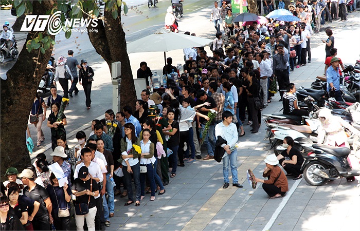 Bất chấp nắng nóng, đông đúc, dòng người vẫn kiên trì nhẫn nại. Và nói như tiêu đề của một bài báo ngày hôm qua thì 'Nắng không làm khô nước mắt đồng bào khóc thương Đại tướng'.