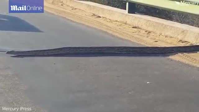 Nín thở chờ trăn khổng lồ dài hơn 5 mét uể oải trườn qua đường