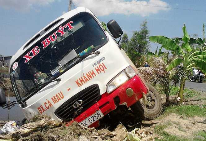 Theo thông tin ban đầu, khoảng 10h ngày 5/5 xe buýt của Công ty TNHH vận tải thương mại Giáp Diệp chạy tuyến TP Cà Mau - Khánh Hội (huyện U Minh) đang chạy từ xã Khánh Hội về TP Cà Mau, khi qua cầu Chệnh Tửng (xã Khánh Lâm, huyện U Minh) bất ngờ xe bị nổ bánh làm mất thăng bằng lao vào lề và lật nghiêng.
