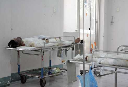 | Nạn nhân Tăng Minh Hòa đang nằm cấp cứu tại BV Chợ Rẫy |