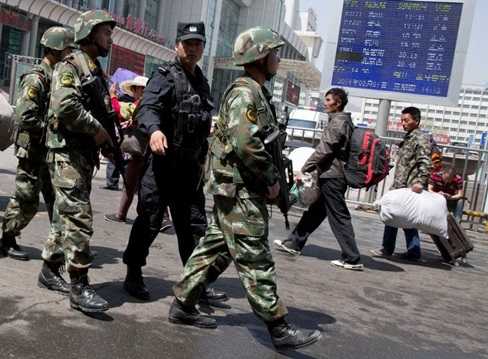 | Cảnh sát vũ trang Trung Quốc tuần tra ở Tân Cương |