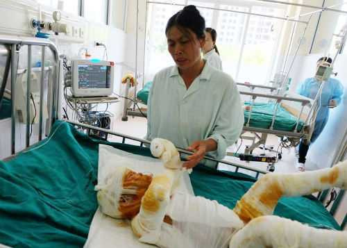 | Vợ chồng anh Khương bị bỏng nặng. |