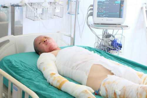Sau khi vụ nổ xay ra, gia đình anh Khương đã được người dân khẩn trương đưa đi cấp cứu tại Viện Bỏng Quốc Gia. Các bác sỹ cho biết, anh Khương bị bỏng 54%, chị Minh bị bỏng 55%, cháu Huy bị bỏng 45%, cháu Phương Thảo bị bỏng 56%. Hiện các nạn nhân đang được các bác sỹ tích cực theo dõi, điều trị trong điều kiện vô trùng.