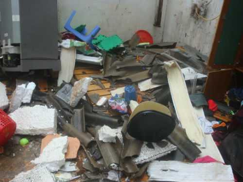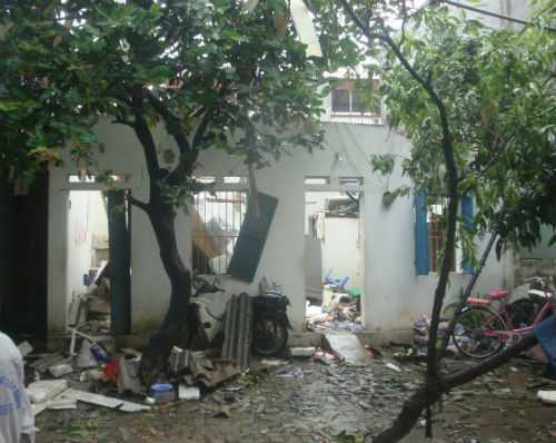 Theo bà Thuy, vụ nổ không chỉ khiến 2 căn phòng trọ cấp 4 bị đổ sập mà các ngôi nhà kiên cố cách hiện trường vài chục mét cũng bị ảnh hưởng. Đặc biệt, những căn phòng trọ cấp bốn lân cận hầu như đều bị lực từ vụ nổ làm hư hỏng mái lợp bằng pờ rô xi măng.