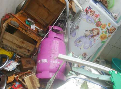 “Khi nghe tiếng nổ lớn, ban đầu tôi cứ tưởng là nhà tôi bị nổ. Tôi vội vàng chạy về thì thấy 2 căn phòng trọ ngay trước nhà tôi bị đổ sập, đồ đạc bị hư hỏng hoàn toàn. Lúc này, 4 người nhà anh Khương đã ra đứng bên ngoài, cả 4 người đều bị thương nặng, tóc bị xém đi,” bà Thuy nói.