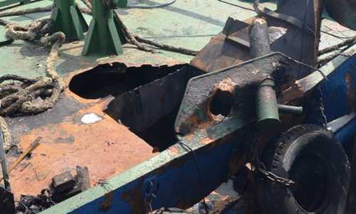 Thời điểm này có 4 công nhân đang ở trên boong tàu đang tiến hành sửa chữa một số bộ phận của tàu. Cụ thể, các công nhân đã sử dụng máy hàn xì.