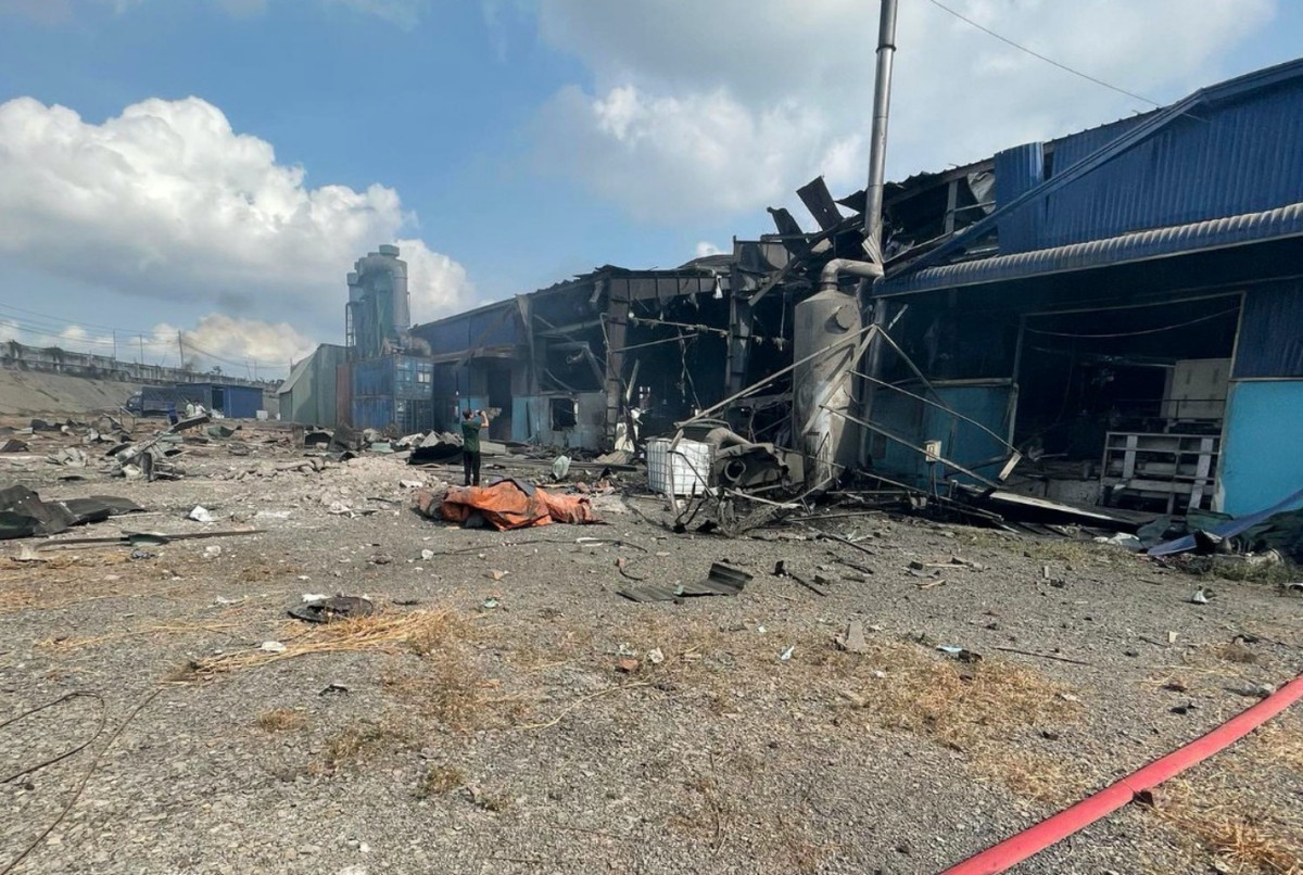 Hiện trường vụ nổ lò hơi ở huyện Vĩnh Cửu (Đồng Nai) khiến nhiều người thương vong.