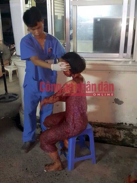 | Một nạn nhân bị thương trọng vụ nổ (Ảnh: Công an nhân dân) |