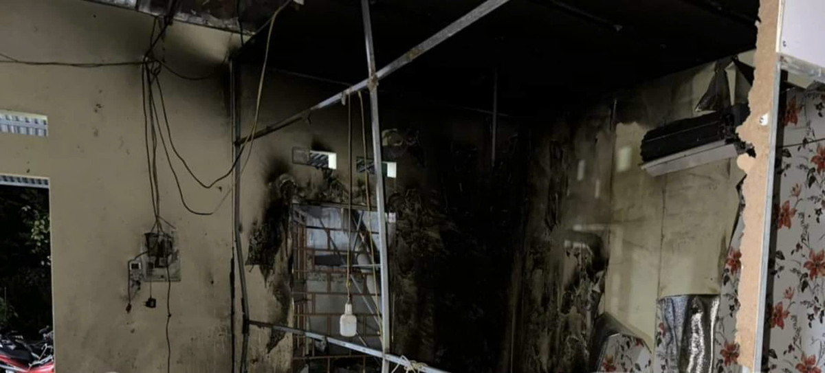 Tại hiện trường, ngôi nhà của gia đình bà Ngọc bị bay một phần mái tôn, phòng ngủ bị cháy xém, hư hỏng nhiều tài sản.