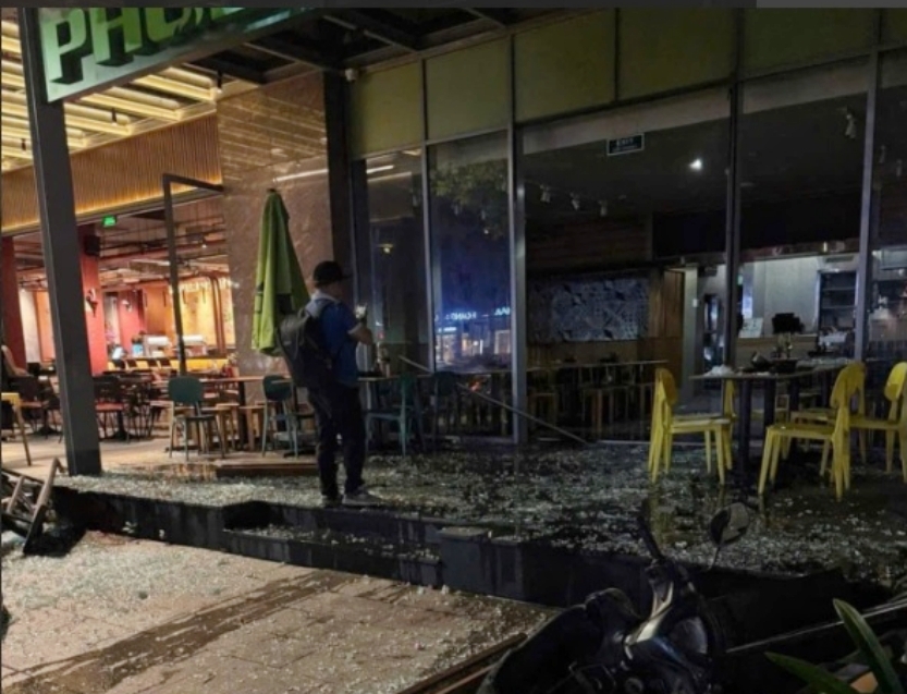 Theo thông tin ban đầu, khoảng hơn 18h30 cùng ngày, người dân bất ngờ nghe tiếng nổ lớn phát ra từ quán phở nói trên. Người dân chạy đến thì thấy cửa kính vỡ tung toé, xe máy, bảng hiệu nằm la liệt.