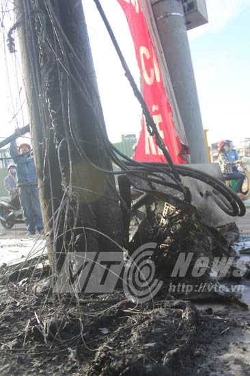 Ngay sau đó, trtụ điện bốc cháy dữ dội kèm theo cột khói bốc nghi ngút rồi sau đó cháy lan qua hệ thống dây điện chiếu sáng và dây cáp viễn thông.