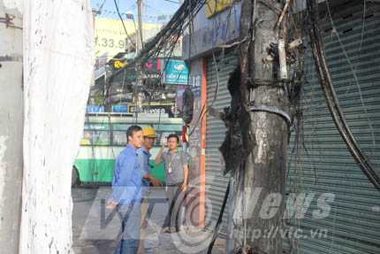 Nhân viên công ty điện lực và công ty viễn thông có mặt để khắc phục sự cố