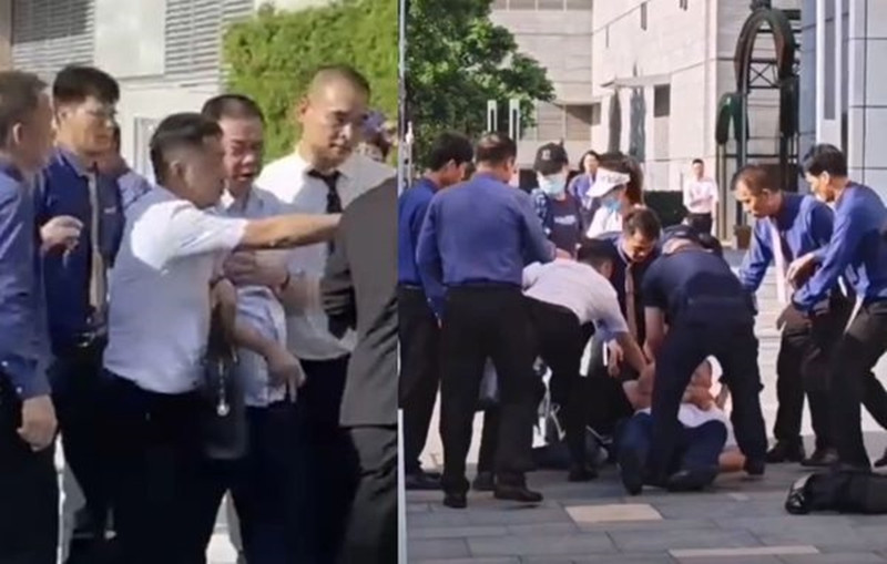 Ông Diêu Chấn Hoa bị đánh ngã xuống đất vì nợ lương nhân viên 2 năm không trả.