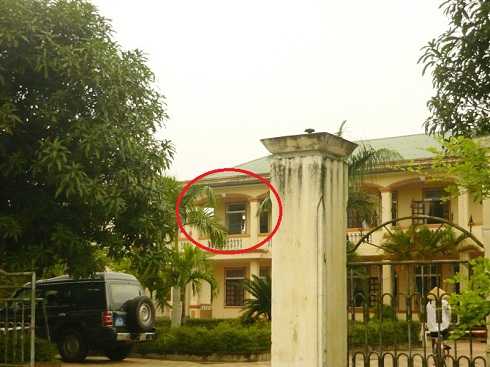 | Hiện trường phòng làm việc của Bí thư xã Nghi Long bị nổ mìn (vòng đỏ) |
