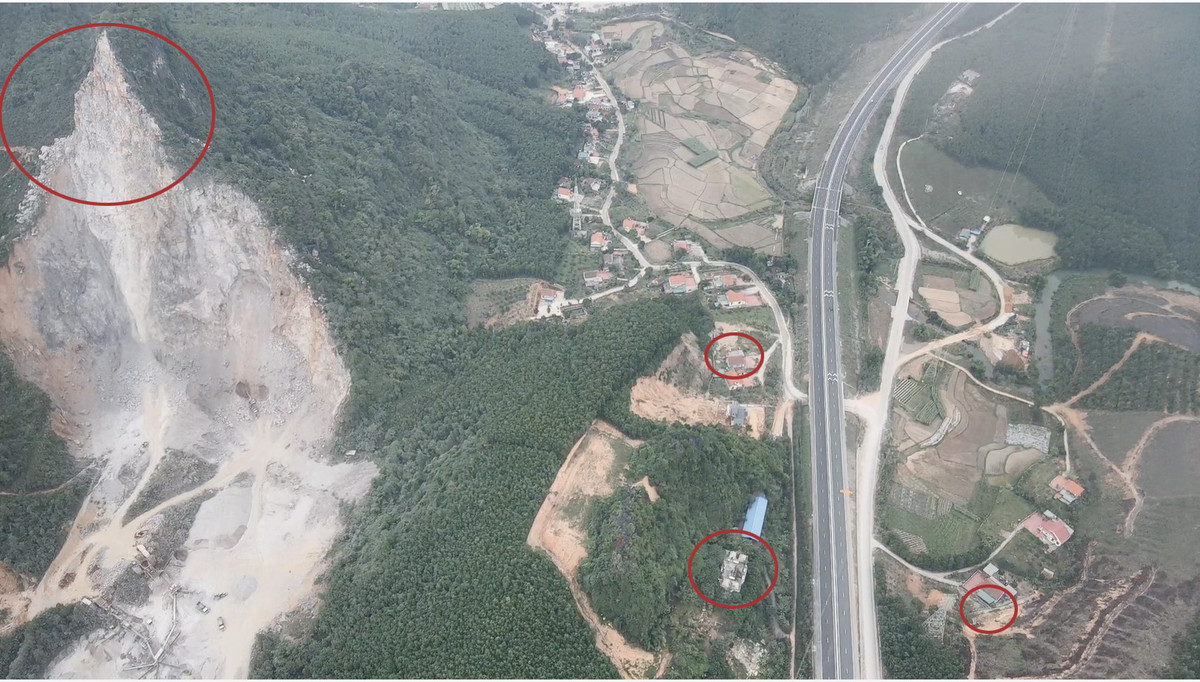 Nhà ông Ngô Văn Ba nằm khá xa khai trường nhưng vẫn bị đá văng qua đường cao tốc sang sát nhà. Rất may, 3 hộ gia đình không ai bị thương tích trong vụ việc này.