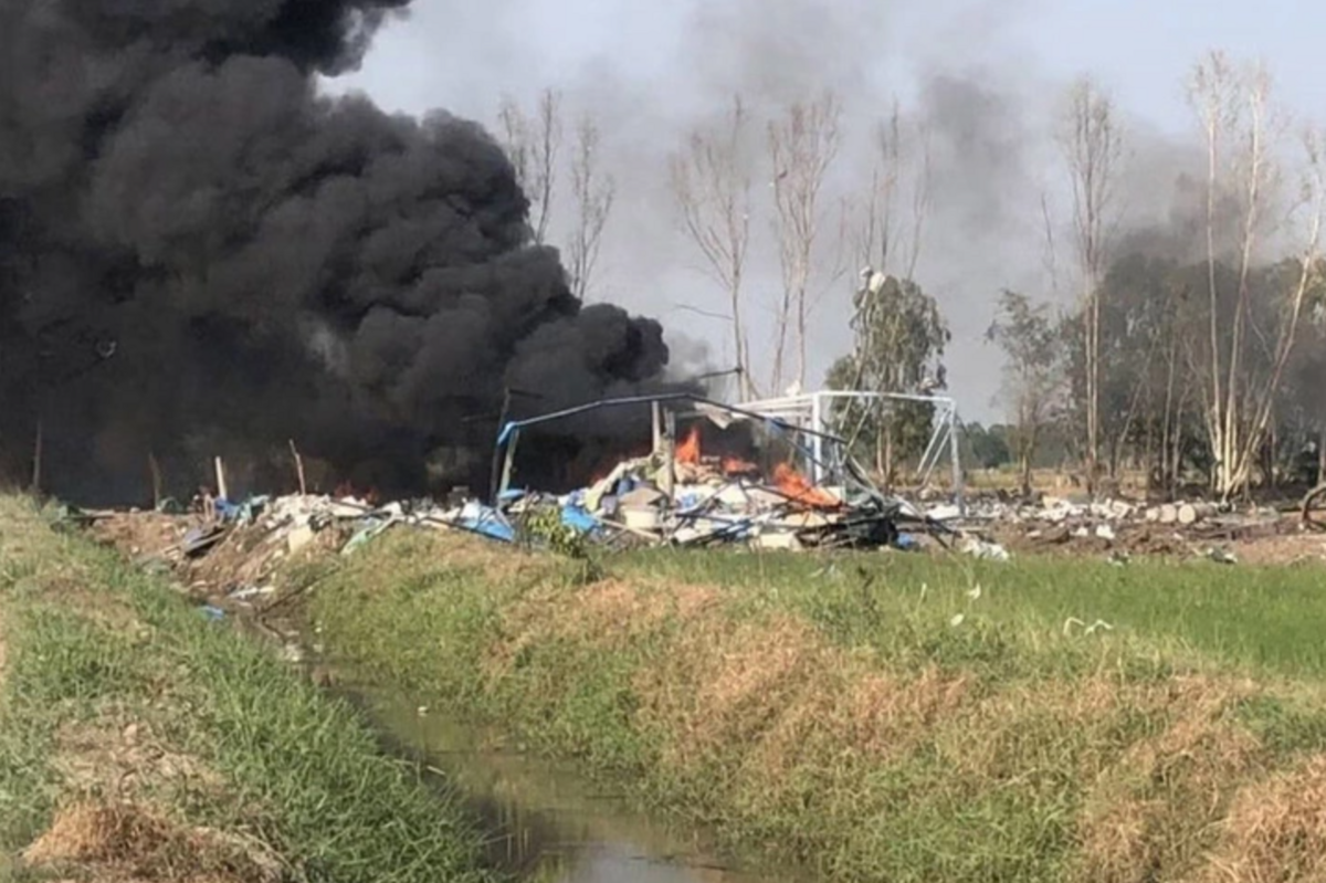 Hiện trường vụ nổ nhà máy pháo hoa khiến khoảng 20 người chết ở Thái Lan hôm 17/1. (Ảnh: ThaiBPS)