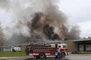 Lực lượng chữa cháy địa phương đang dập lửa.