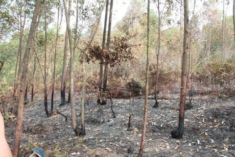| Một khu rừng cách hiện trường chừng 500m bốc cháy. |