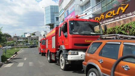 | Xe chữa cháy vẫn được huy động tại hiện trường |