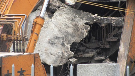 | Những bức tường chỉ còn trơ trọi lõi sắt |