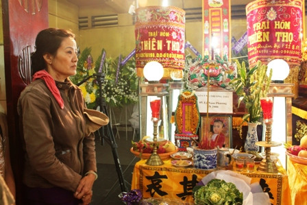 Người vú nuôi Phan Thị Kim Sang (SN 1960) luôn theo suốt chặng đường kể từ khi gia đình anh Lê Thanh Phương được chuyển đến nhà xác An Bình và sau đó chuyển về chùa Vĩnh Nghiêm, chết điếng đứng cạnh bên.