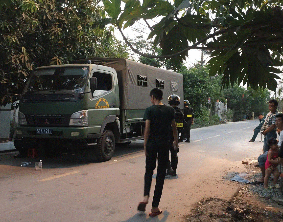 Nghi can Lê Quốc Tuấn 33 tuổi, có biệt danh Tuấn "Thủy", thường trú ấp 5, xã Tân Thạnh Đông, huyện Củ Chi. Tuấn là thượng úy, cán bộ Đội Cảnh sát Thi hành án hình sự và hỗ trợ tư pháp - Nhà tạm giữ, Công an quận 11. Chiều 29/1, tại sới bạc ở vườn nhãn thuộc ấp 5, xã Tân Thạnh Đông, Tuấn xả súng làm 4 người chết và một người bị thương rồi cướp xe máy SH rời khỏi hiện trường.