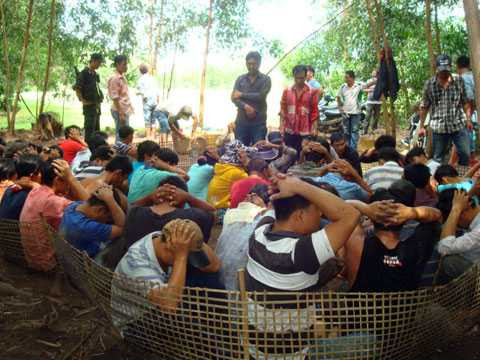 Hàng chục người đang say sưa sát phạt bỗng giật mình, bỏ chạy toán loạn khi tiếng súng cảnh cáo của cảnh sát vang lên. Gần 60 người tham gia đá gà và lắc tài xỉu ăn tiền đã bị đưa về đồn. Hàng chục triệu đồng, khoảng 40 điện thoại, 22 xe máy và nhiều vật dụng được cho là tang vật vụ án cũng bị thu giữ.