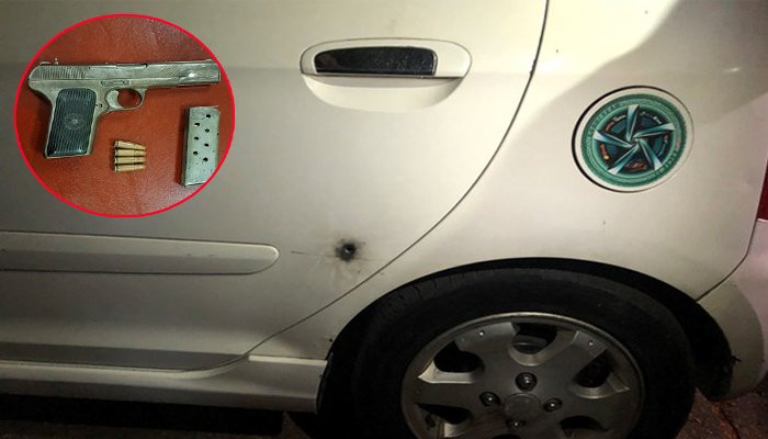 Đạn từ súng của Thắng bắn vào một chiếc xe taxi ở gần đó (Ảnh: Cơ quan công an cung cấp)