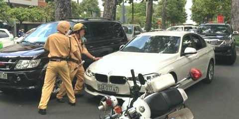 Chiếc BMW chạy đến giao lộ Điện Biên Phủ - Hai Bà Trưng bị CSGT Bàn Cờ (thuộc Phòng CSGT Đường bộ - Đường sắt CA TP.HCM) chặn bắt. Tuy nhiên, tài xế cố tình tông ngã mô tô đặc chủng nhằm thoát thân. CSGT đã phải rút súng bắn chỉ thiên cảnh cáo.