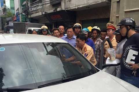 Gần 1 giờ sau, trung tá Lê Văn Thanh - Tổ trưởng điều tra, xử lý tai nạn Đội CSGT Công an quận 3 đến thuyết phục. Tài xế Vũ mới chịu mở cửa.