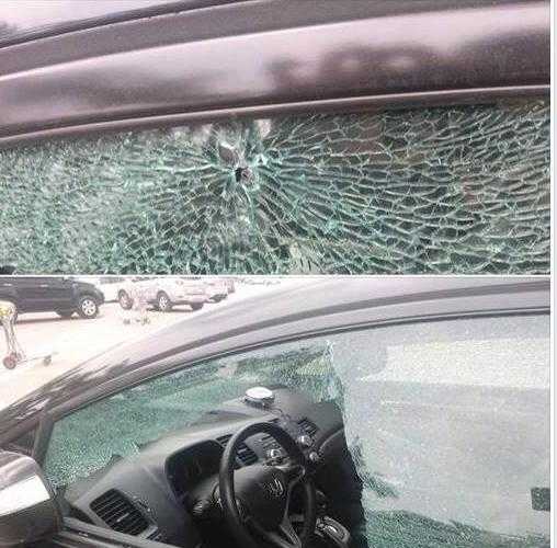 Theo những hình ảnh mà bạn Nguyên này đăng tải, chiếc xe của người này bị vỡ hoàn toàn tấm kính cửa bên lái và một vết thủng ở kính chắn gió.