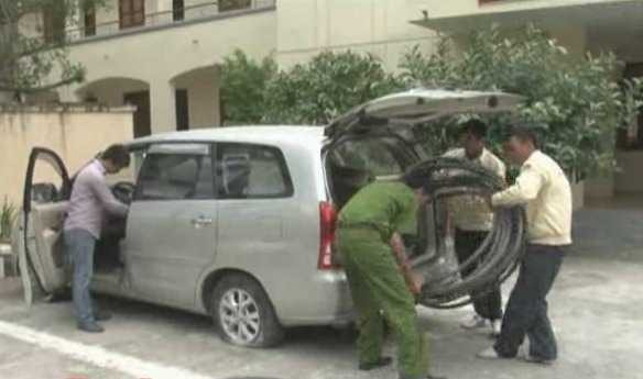 (VTC News) - Trên tuyến Đại lộ Thăng Long, đoạn chạy qua điện phận xã Ngọc Liệp, huyện Quốc Oai, Hà Nội, các trinh sát mật phục đã phát hiện 3 đối tượng điều khiển xe ô tô đang dùng các dụng cụ cắt phá để lấy trộm khoảng 100 mét dây cáp.