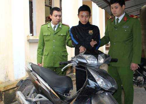 | Đặng Việt Đức và chiếc xe máy thanh niên này đã cướp của lái xe ôm |