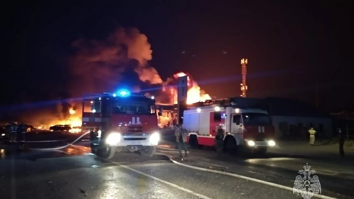 Theo người đứng đầu cộng hòa Dagestani Sergei Melikov, ngọn lửa bắt xuất hiện tại một trạm sửa ô tô bên cạnh trạm xăng và bắt đầu lan ra nhanh sau đó, ông này nói thêm hai trong số tám bồn nhiên liệu ở trạm xăng đã phát nổ.