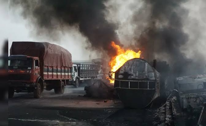 Hiện trường vụ cháy xe bồn khiến gần 100 người thiệt mạng. (Ảnh: NDTV)