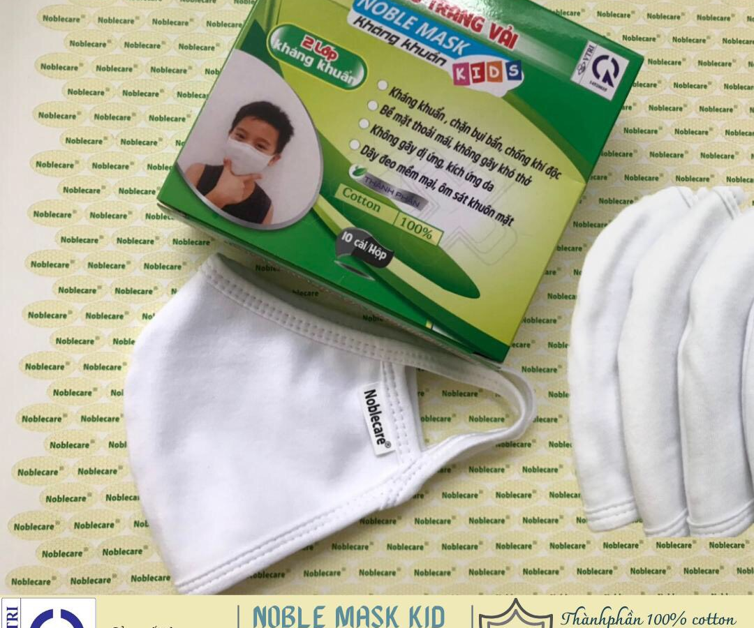 3. Noble Mask Kids (Thành phần: 100% Cotton, 2 lớp kháng khuẩn), tỷ lệ kháng khuẩn: 99,9%