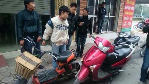 | Hai đối tượng trộm xe máy điện bị bắt trữ trước Bách hóa Thanh Xuân |