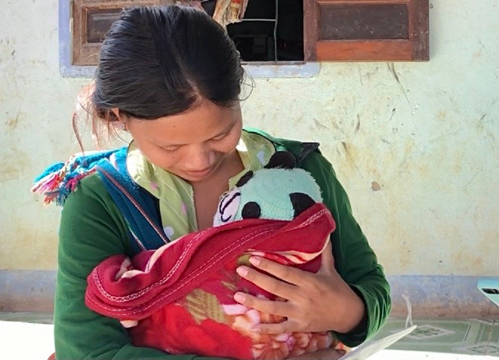 Lùng (16 tuổi) theo chồng về ở bản làng Tuek và đã làm mẹ được gần 7 tháng.