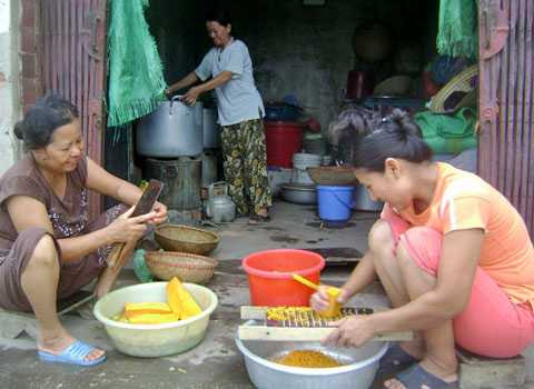 Nhiều bạn trẻ trong xóm cũng tham gia giúp các cụ chuẩn bị. Ảnh: Hoàng Thùy.