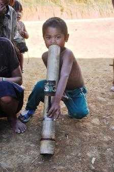 Những đứa trẻ từ 7-10 tuổi, cũng không biết chúng hút từ lúc nào, nhưng nhìn cái cách chúng mồi thuốc, thắp điếu, rồi rít thuốc như đốt rạ không ai không thấy xót lòng! Từ trên nhà sàn bước xuống, bé Kăn Póc (6 tuổi) mang tẩu thuốc cao quá thân người mình.