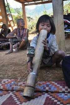 Trước căn nhà sàn, Hồ Thị Pương đang ngồi dệt thổ cẩm. Chốc chốc, điếu cày trên tay chị Hồ Thị Pờ Lớt - một người bạn hàng xóm lại đưa sang, chị đưa miệng vào rít, tẩu thuốc cháy đỏ, tàn rơi vãi, rồi chị nhả khói ngon lành. Pương năm nay 44 tuổi và đã có 6 mặt con, trừ 2 đứa nhỏ còn chập chững và ẵm ngửa, 4 đứa trẻ còn lại đều có 4 tẩu thuốc lào riêng cho mình.