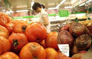 | Cà chua là mặt hàng có biểu hiện thối hỏng dễ thấy nhất ở Metro Thăng Long. |
