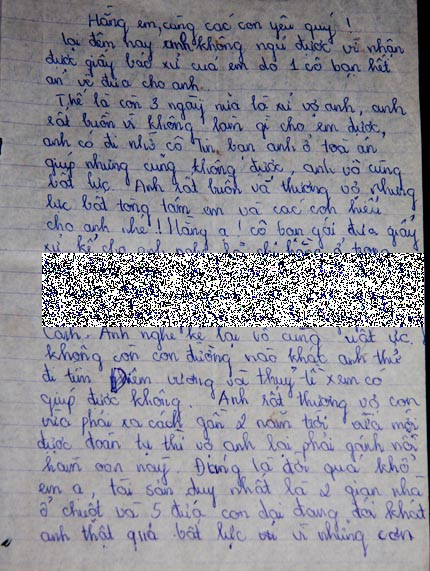 | Lá thư tuyệt mệnh của chồng bà Hằng |